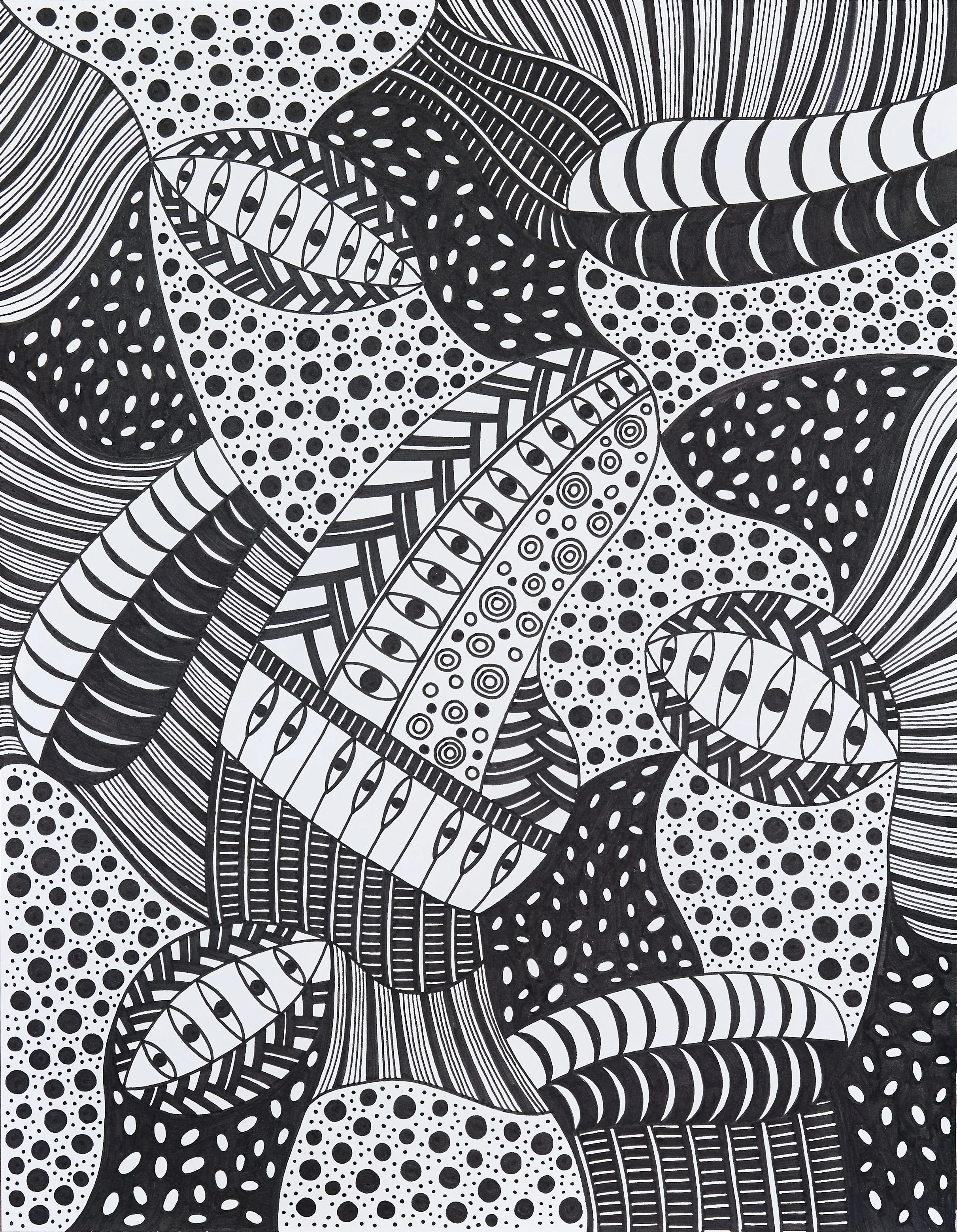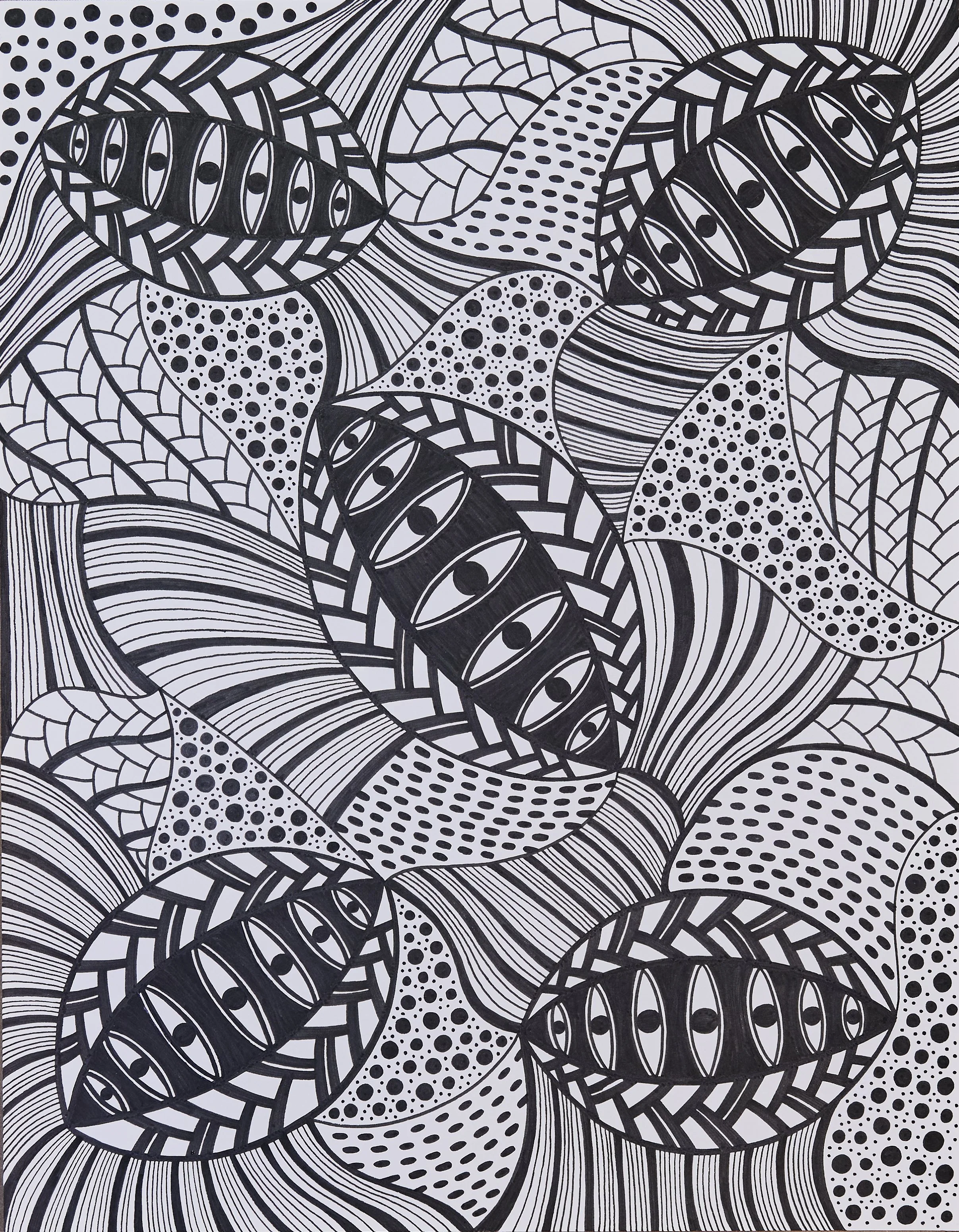 A signature element in her drawings is the human eye, a symbol of connection that makes meaningful relationships possible.
